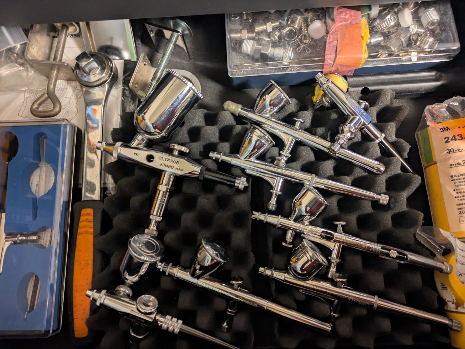 竹島様、無事商品届きました。特典も有り難く使わせていただきます! 絵描きだった母が持っていたのがオリンポスジャンボだったので自分の中ではエアブラシ=オリンポスなんです。 母ははやくに亡くなったので実際にジャンボを使っていたかはわからないのですが自分が引き継いで使わせてもらっています。 徐々にオリンポスエアブラシを揃えますので今後ともよろしくお願いします!