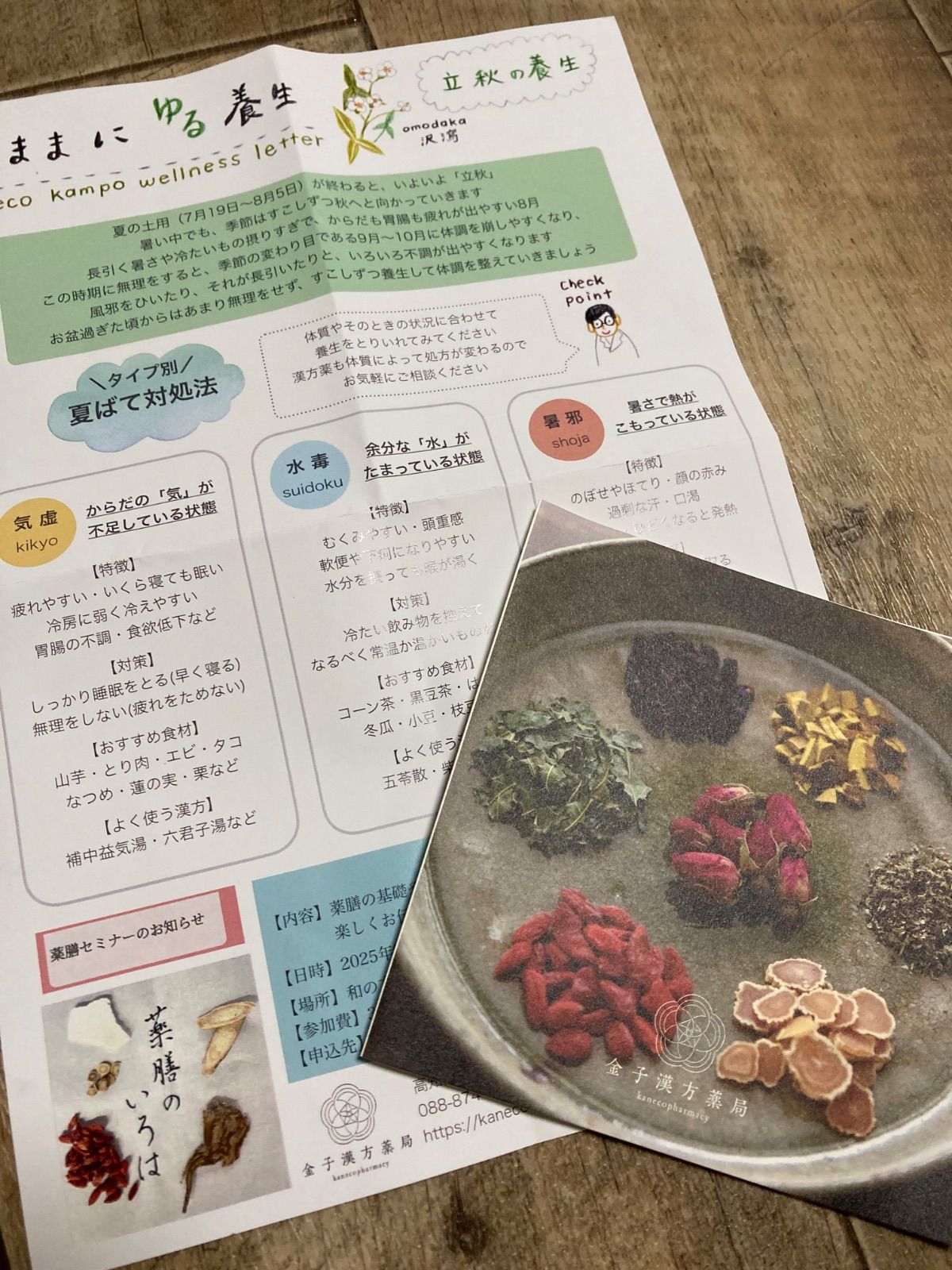 このたびはご利用いただきありがとうございました! 養生レターは季節ごとに作成しておりますので、またの機会がありましたらぜひ、ご覧くださいませ。
