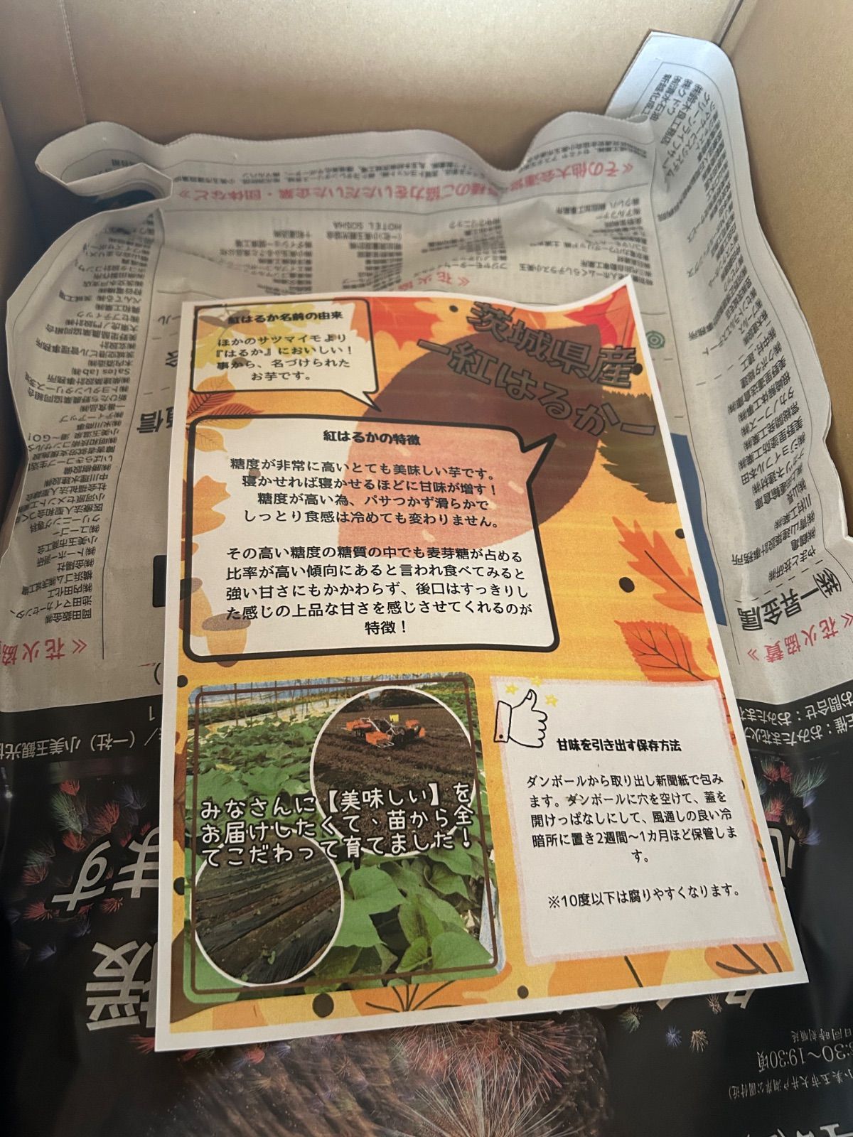 綺麗に箱詰めされたとても立派なさつまいもが届きました!すぐオーブンで焼いて食べましたが、充分甘くって美味しいさつまいもでした!残りは書いてある通り保管したのでもっと甘くなるのが楽しみです。
