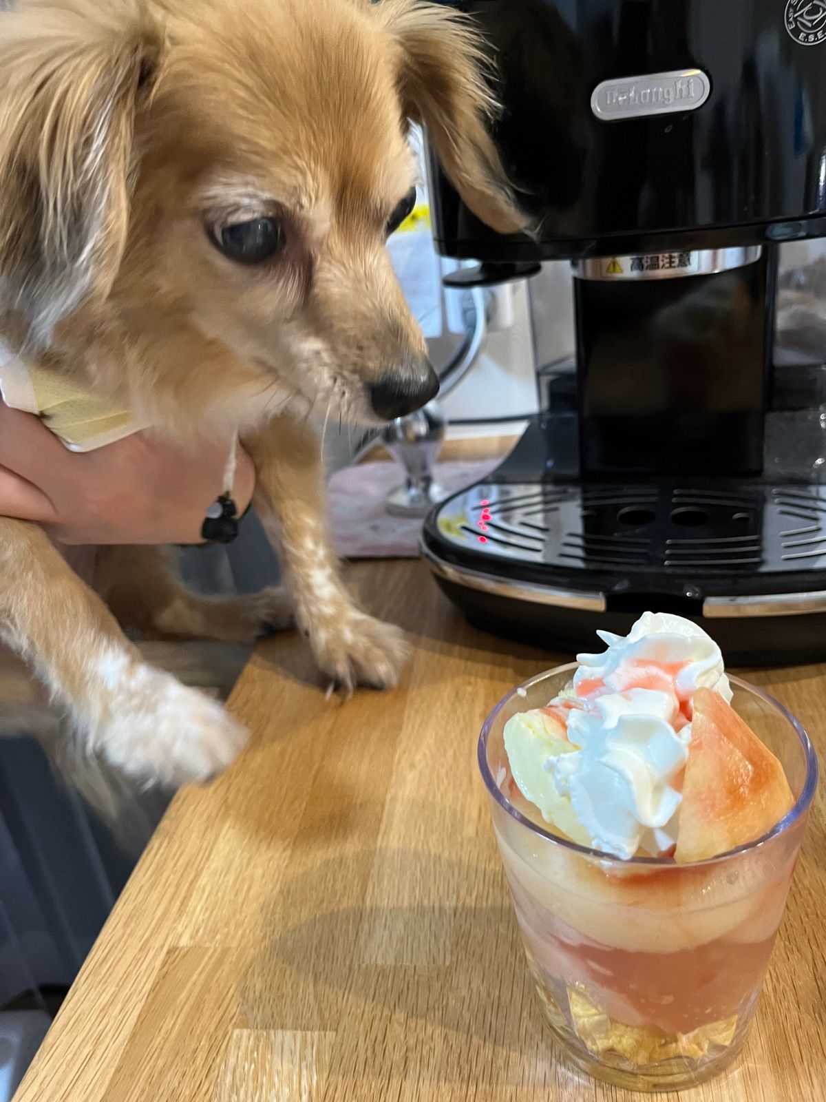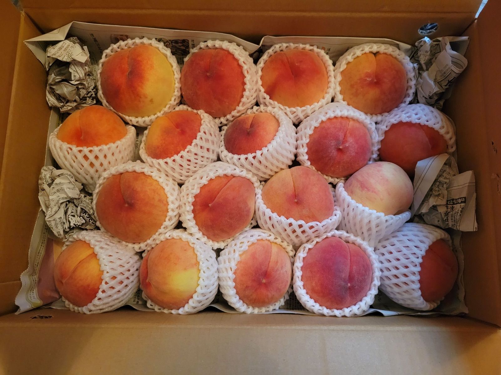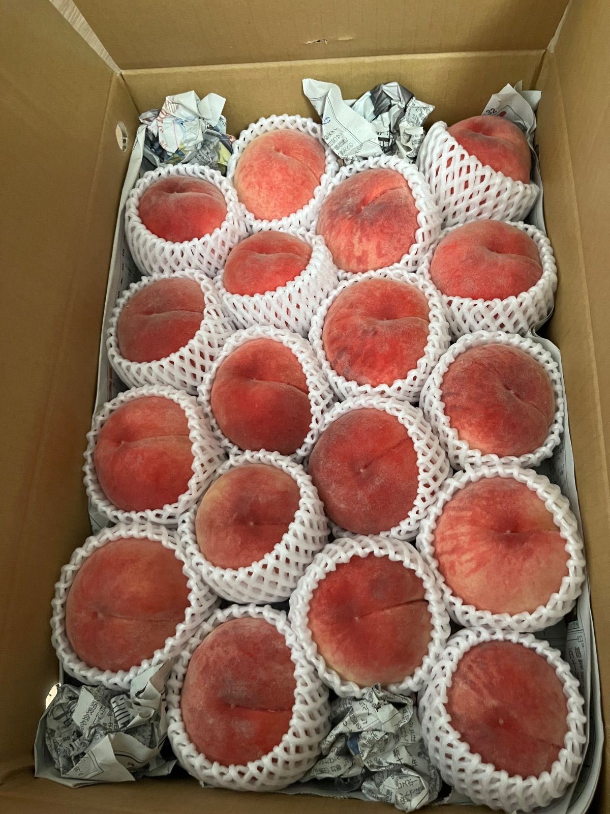 無事いい匂いで届きました桃 わんこが匂いに誘われています。 桃ゼリーとコンポートにして残暑も楽ます🙏感謝です。傷みはないですよ ちまコイちゃんに娘もうぁ〜って Kb様たくさんの桃ありがとうございました♪
