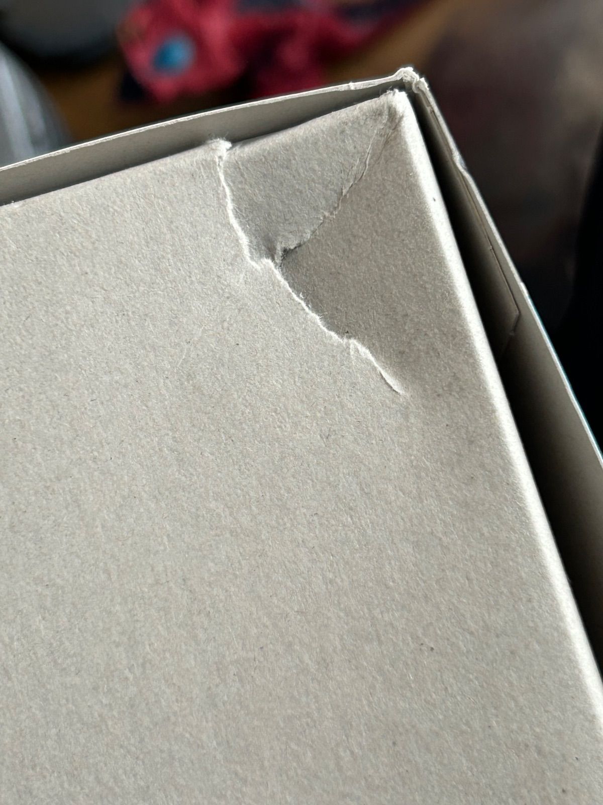 確認した所、無事に商品が届いたのですが、写真の2枚目の通り箱の下に穴が開いていますが、中身は大丈夫でした。 ありがとうございます。、