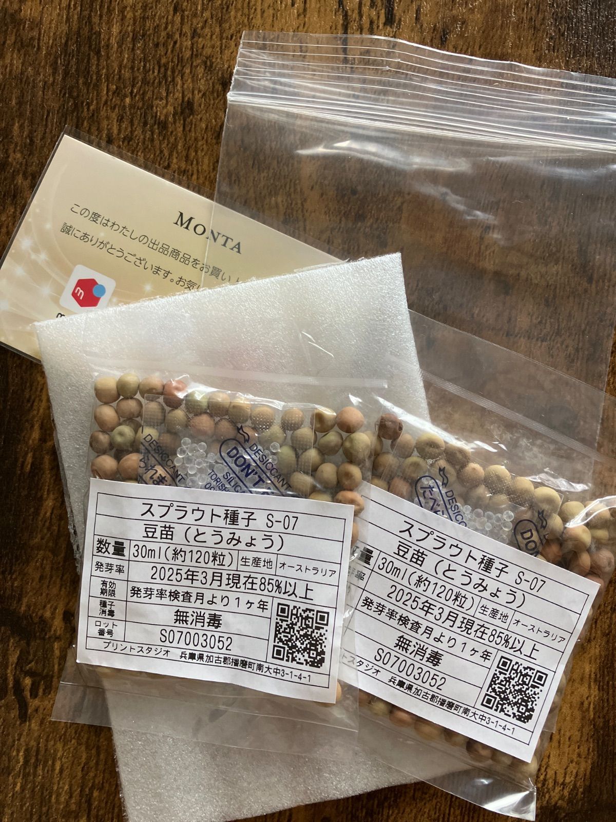 スプラウト種子 S-07 豆苗(とうみょう) 30ml 約120粒 x 2袋