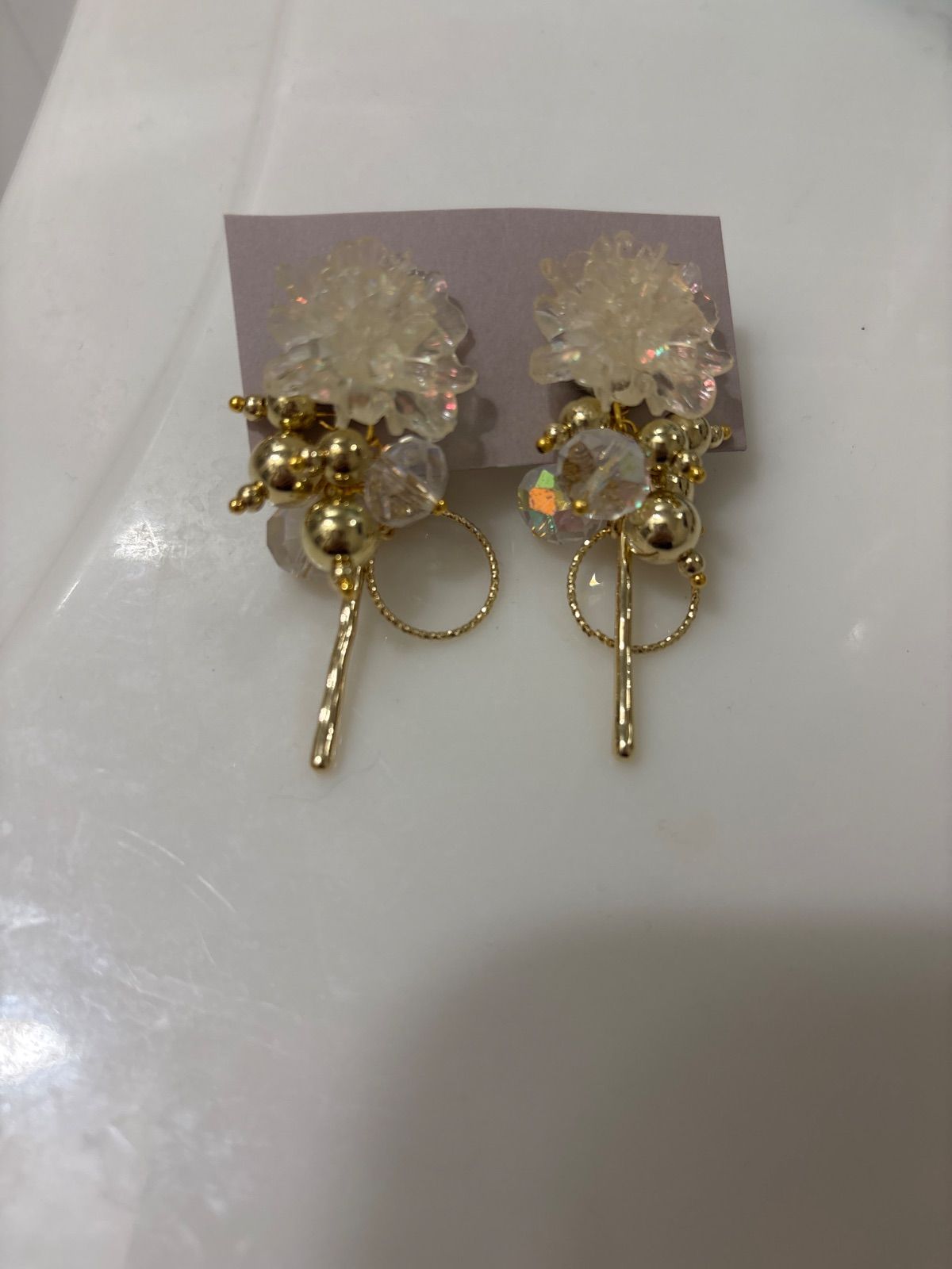 #641大ぶり/花/ゴールド/揺れる/ビーズ/ハンドメイドピアス♢イヤリング