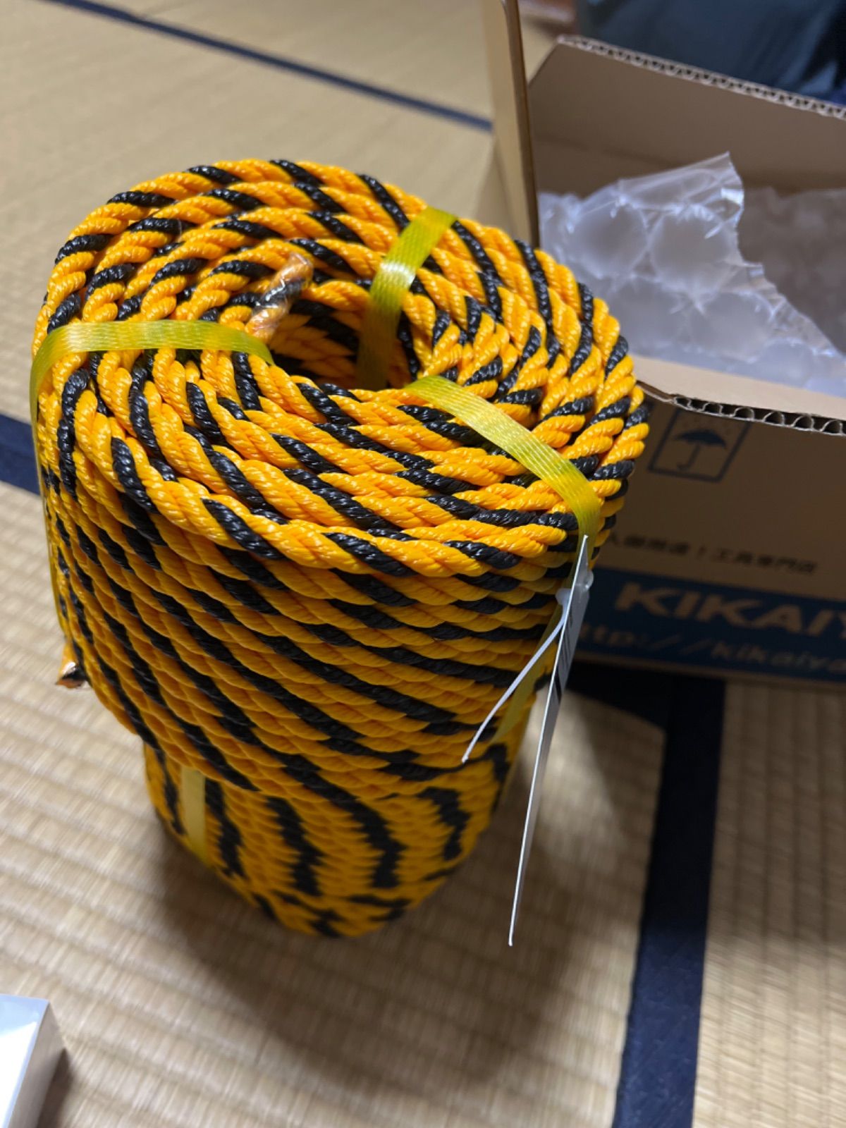 トラロープ 標識ロープ Φ約7~8mm×50m 2個セット 黒黄ロープ 縄 駐車場 工事現場 危険表示 立入禁止 バリケード KIKAIYA