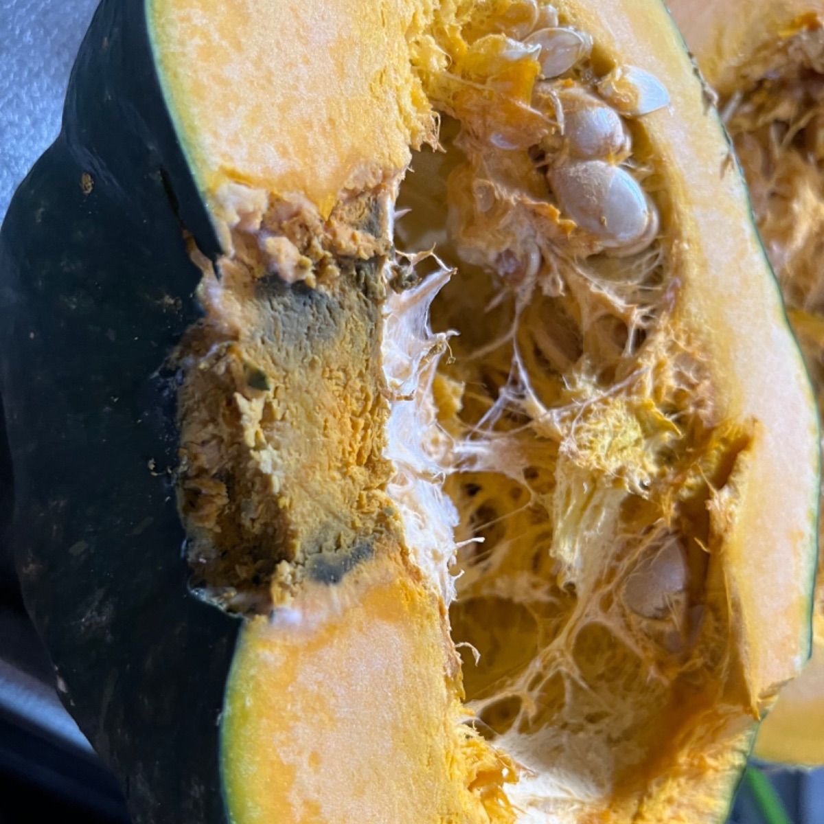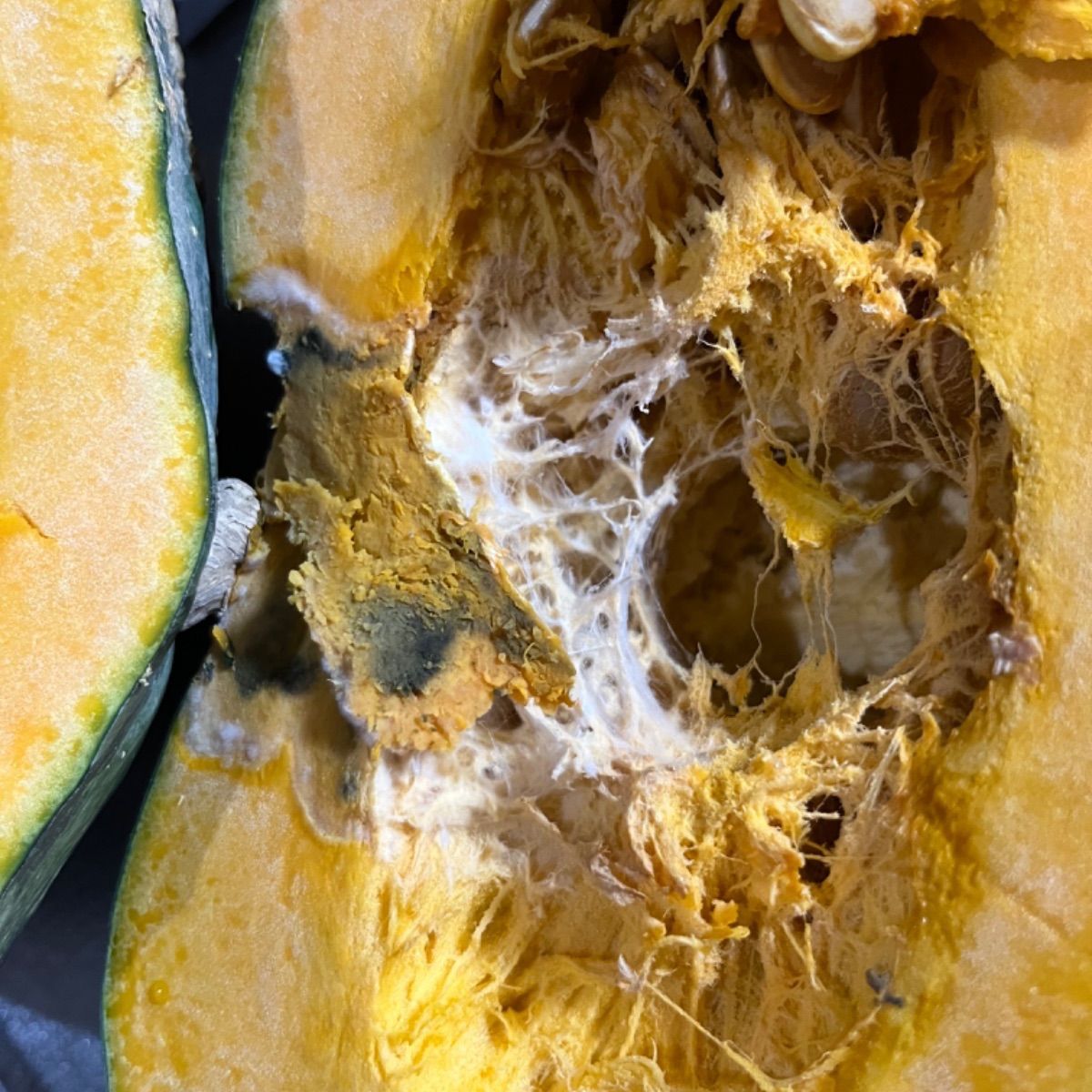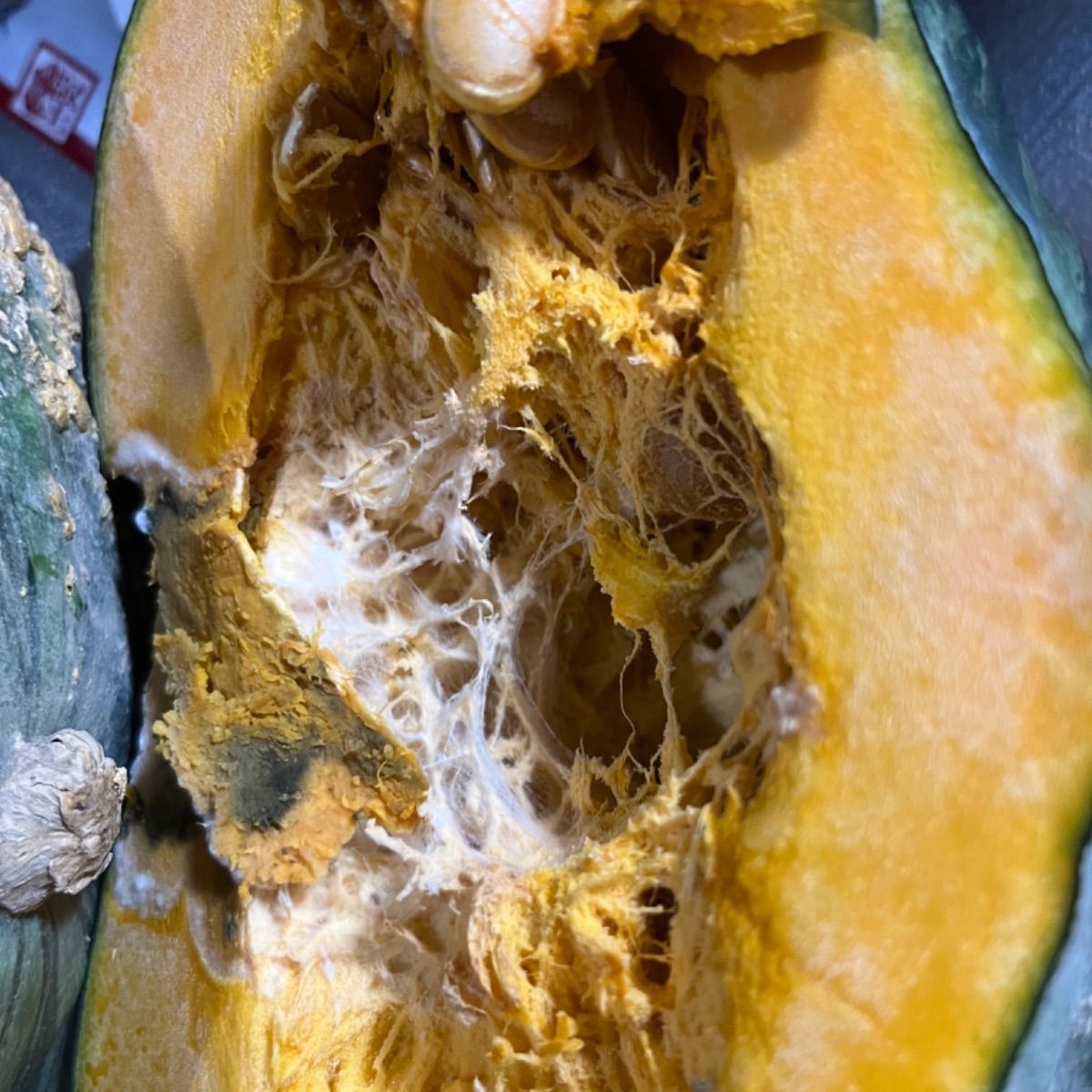 一番酷いのがこのかぼちゃでした。 後は画像の様な白いカビが ぽつとある感じでした。 マシなやつを食べました。味は美味しかったです。傷がついている商品の訳ありとは思ってませんでした。送料が大半を占める商品なので悪気はないと思います。