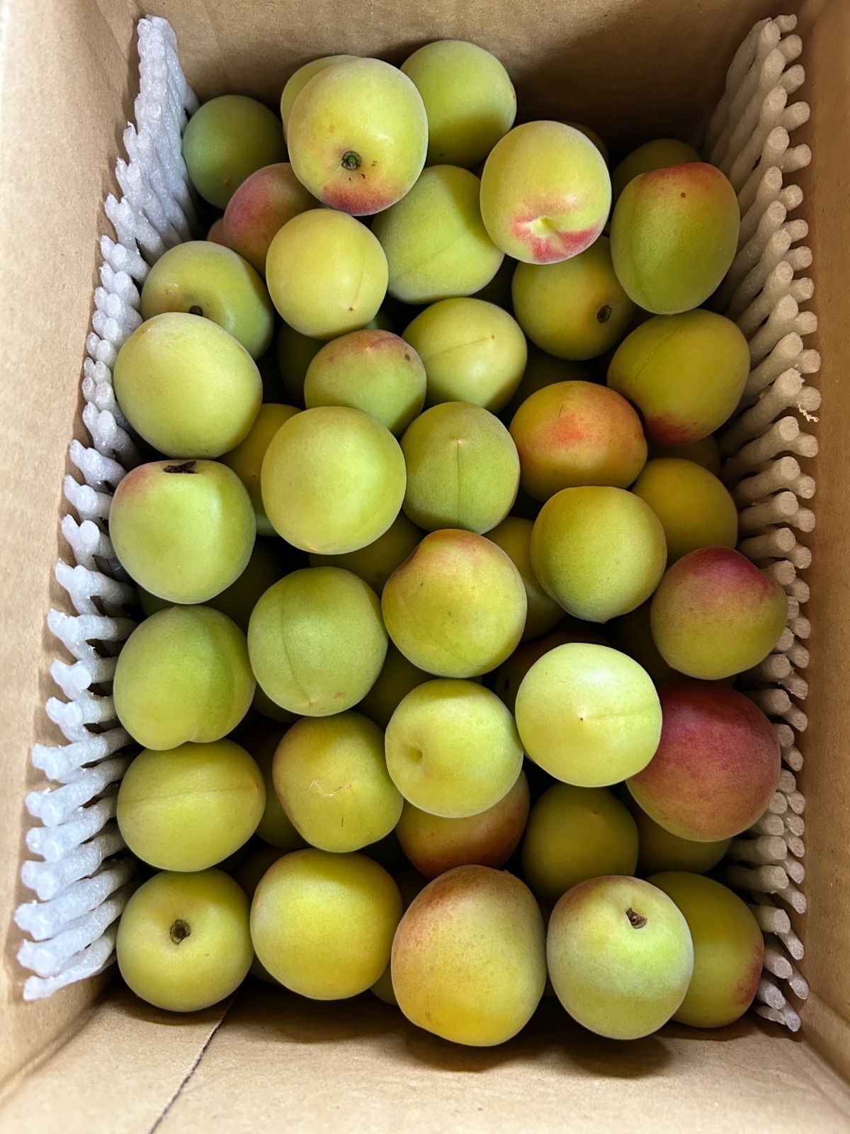 無事に到着いたしました! 到着まで2日かかる場合には購入を断っている方がおりますが、こちらではそのようなことはなく、常温でもとてもキレイな状態で到着いたしました!梱包も丁寧にありがとうございました! 梅自体もキズなど少なく、箱を開けると梅のいい香りがしました!梅のサイズも想像していたくらいのちょうどいいサイズで、大満足です! 追熟させて梅干しを作る予定です! ありがとうございました! 是非またよろしくお願いいたします(^^)
