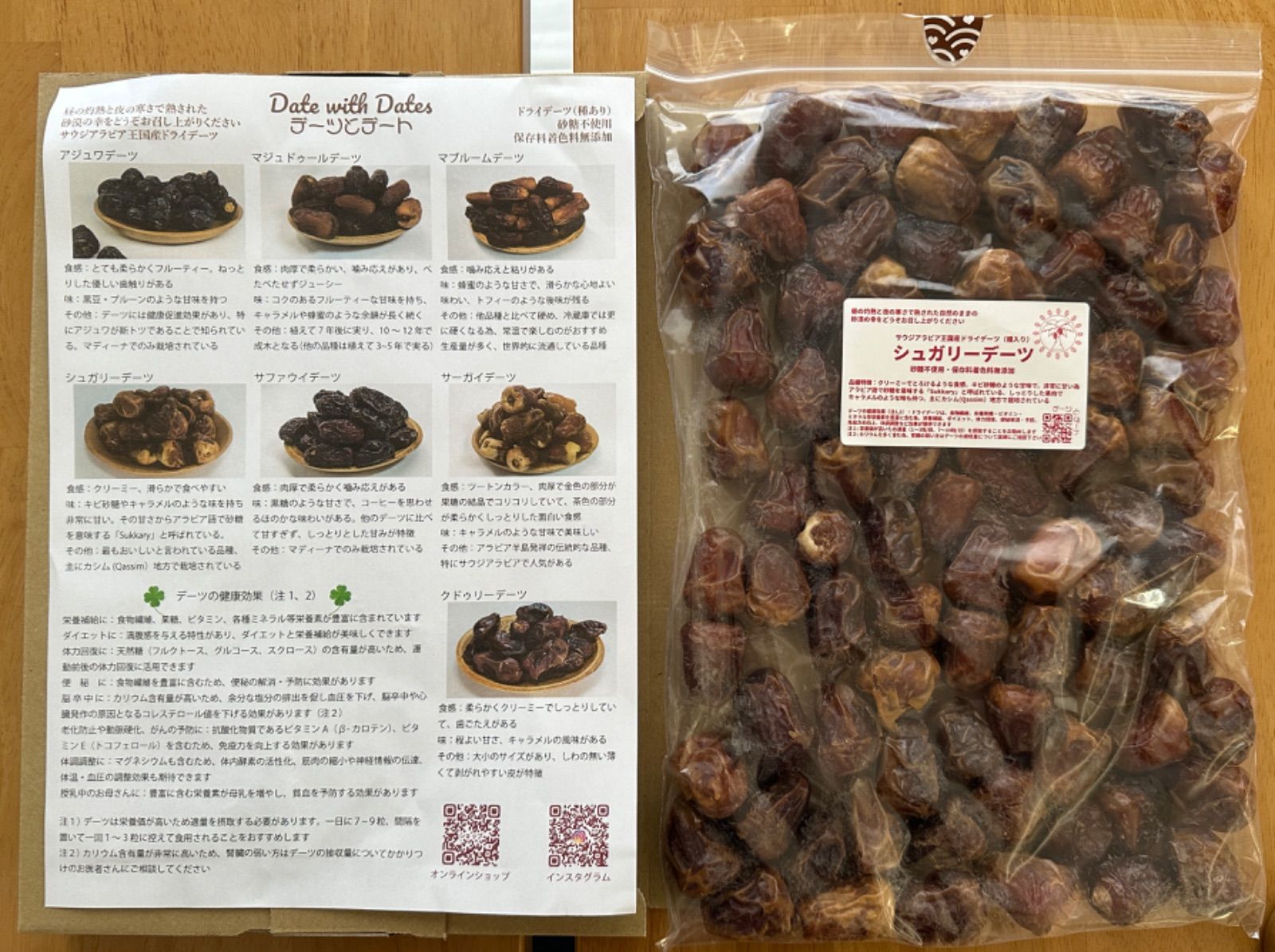 以前7種のバラエティパックを注文し、種類について質問した際は丁寧に答えて頂き、ありがとうございました。 何種類か好みのデーツを見つけたので今回は大容量で注文しました。 購入から2日で手元に届き感謝しています。 これからもこちらのお店でデーツを購入したいと考えています。よろしくお願いします( ´ ▽ ` )