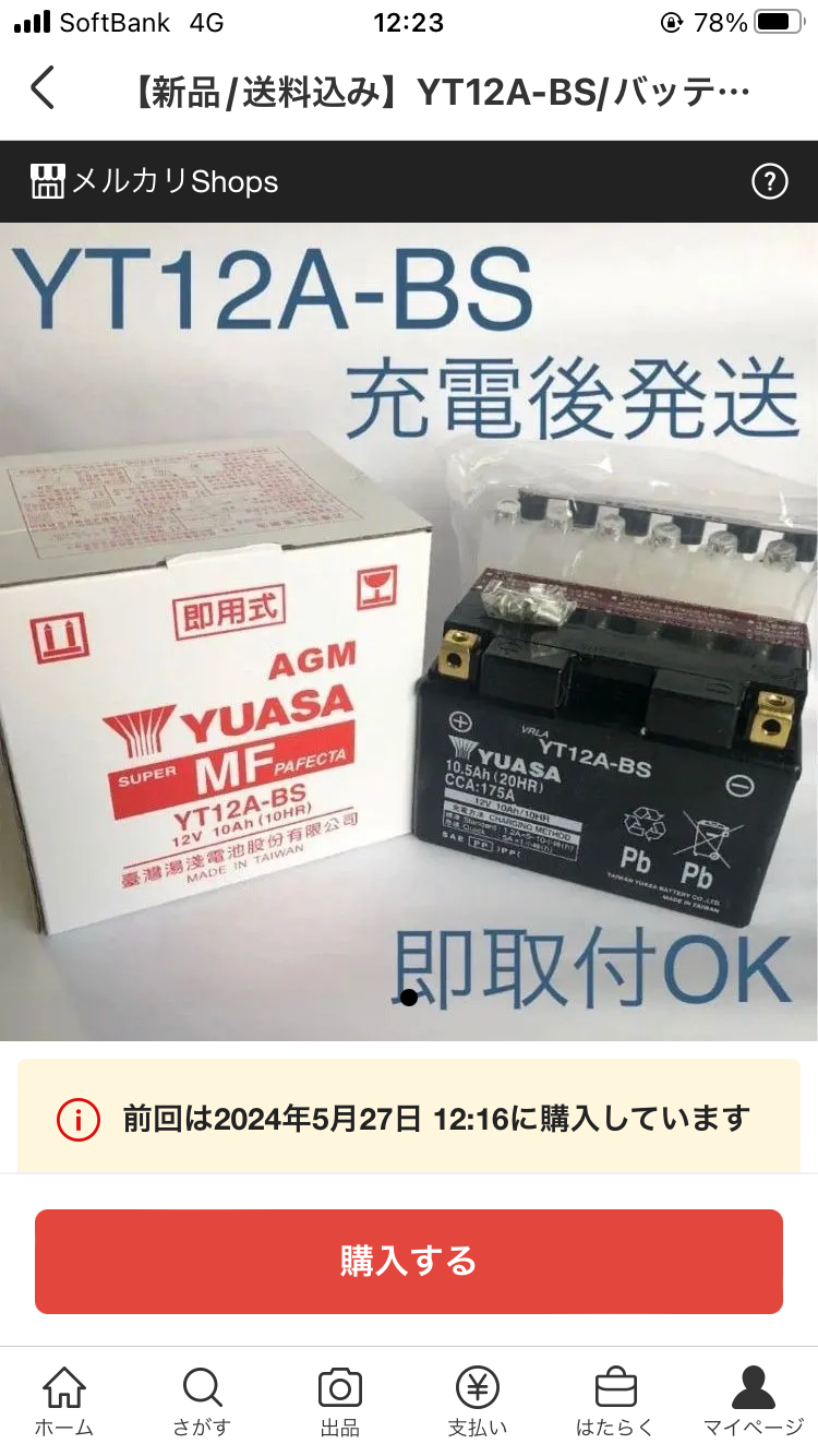 素早い発送対応いただき、発注の翌日に受け取りました。電圧は問題なく後は雨が止んだら取付けしてみます。ちょい乗りが多いので注意して 時々バッテリーのパルス充電してメンテするつもりです。前のバッテリー(同台湾ユアサ製)が、2年半で交換となりました。延命となるか楽しみながら挑戦します。ありがとうございました。