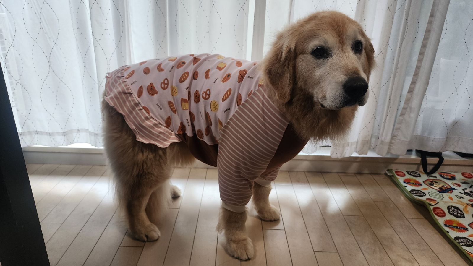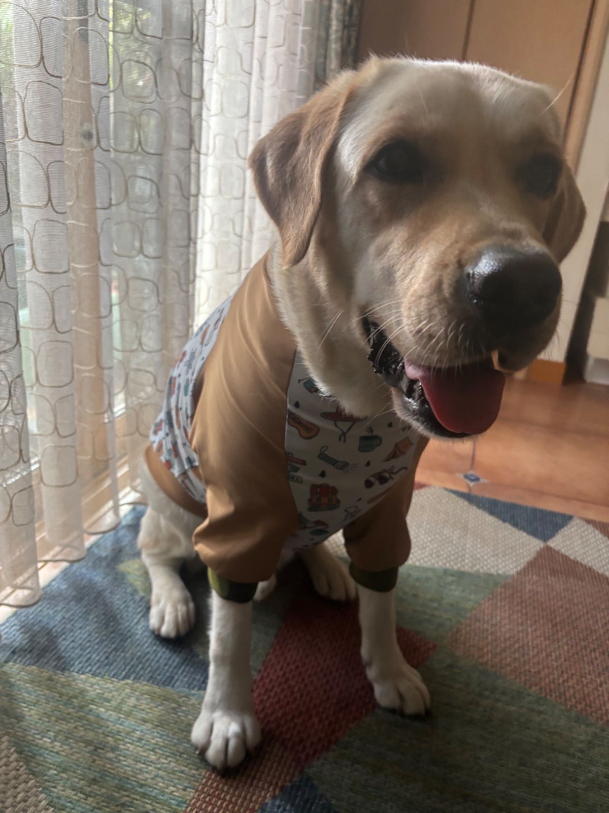 プール帰りで疲れた感じですが(^^;泳いだ後は、タオルドライしてから袖付きウェアを着てしばし休憩。パジャマみたいでめちゃ可愛い(^.^)次回は、後ろ足付きも良さげですね~♡今回も素敵な品をありがとうございます。メッセージもホッコリしました!