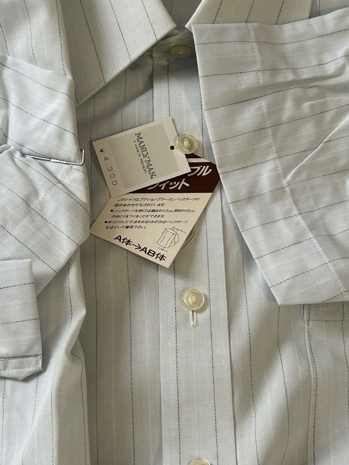 新品未使用 メンズワイシャツ ホワイトに茶ストライプ 襟まわり38cm サイズは画像5枚目参照 A体→AB体にできるアジャスタブルフィット ブラウン 長袖 カッターシャツ ドレスシャツ タグ付き